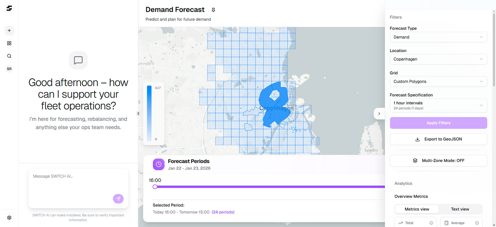Each scenario provides transparent metrics — demand served, emissions reduced, costs optimized, and service accessibility — giving both private and public clients a quantified basis for decision-making.